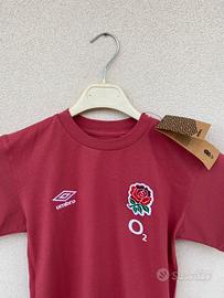 Maglietta Umbro Inghilterra Rugby sportiva in corone soffice morbido e di qualita misto a poliestere e nylon per una maggiore resistenza e traspirazione, taglia S da bambino Nuova.