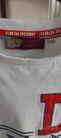 Maglietta a maniche lunghe del brand Original Marines, taglia 11/12 anni. Presenta una stampa grafica di un'auto sportiva e la scritta DR RIDEFASTER. - Colore bianco - Maniche lunghe - Stampa auto e scritta - Indossata poche volte