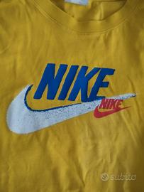 Maglietta Nike bambino: marca Nike; taglia M (137-147cm); a maniche corte; colore giallo con logo bianco e scritta blu e rossa; usata