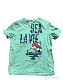 - Stampa 'Sea La Vie' sul retro con barca a vela e tramonto.