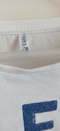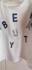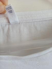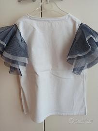 Maglietta ragazza, marca Idexe', taglia 11/12 anni, colore bianco, con scritta glitter e paillettes, maniche con tulle bianco e blu. In ottimo stato