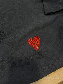 Maglioncino top largo Brums 98 cm 3 anni Blu scuro con applicazione e cuore strass
