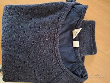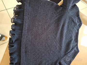 Vendo maglioncino di colore blu con volant lungo il bordo inferiore, taglia 10 anni, marca Gap. Usato pochissimo e in ottime condizioni.