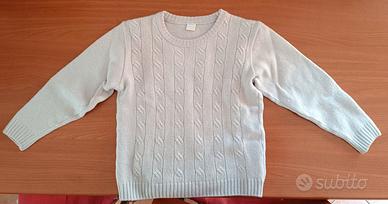 Maglioncino/pullover in 100% lana Maglieria Lord per bambino tg. 6 anni. Colore azzurro chiaro, lavorato a trecce sul davanti. In ottime condizioni.