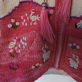 maglioncino di lana peruviano con cappuccio taglia 4-6, mostra alcuni segni di usura