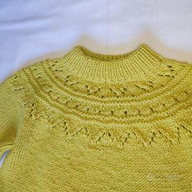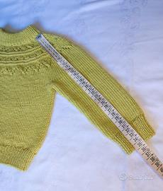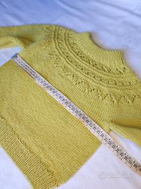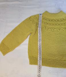 Maglioncino in lana merino fatto a mano ai ferri. Nuovo, mai usato. Taglia 2/3 anni, misure in foto.
