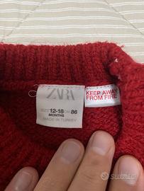 Maglione bambina/o Zara tema natalizio con simpatica renna con naso pon-pon colore bordeaux taglia 12-18 mesi (86cm) in tessuto misto acrilico molto caldo, perfetto per il periodo natalizio. Il maglione si presenta ancora in ottime condizioni nonostante si stato indossato alcune volte. Vendo per inutilizzo.