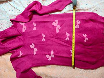 maglione fucsia con fiocchi rosa e collo alto per bambine. in lana e cashmere