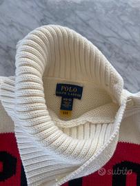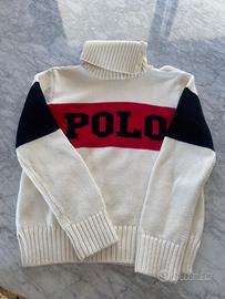 Maglione in cotone Polo Ralph Lauren con scritta ; collo alto che si puo' aprire grazie ai bottoni sul lato Taglia M (8-10 anni) Come nuovo