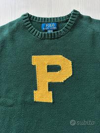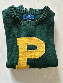 Maglione Polo Ralph Lauren in cotone invernale color verdone con lettera P in giallo, per ragazzo, taglia M (10-12 anni), come nuovo.