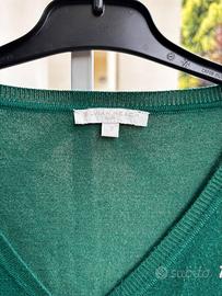 maglione verde, indossato poche volte, stretto su polsi e fine vita, presenta 5 bottoni marrone chiaro per la chiusura ( + bottone di scorta ) . Età 7 anni. Marca Silvia Heach