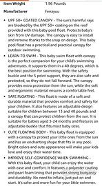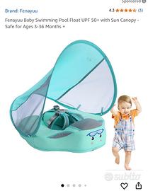 Mambo Baby galleggiante per piscina con tettuccio parasole e coda. Protezione solare UPF 50+. Per bambini dai 3 ai 24 mesi. vedere le immagini per la descrizione completa del prodotto. . . comprato l'estate scorsa, usato 2/3 volte. Come nuovo. Ottima qualità. Sicuro e facile da usare. 10/10. Uno dei migliori sul mercato.