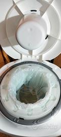 contenitore per pannolino con sistema brevettato anti odore della Sangenic con una ricarica di buste inclusa e un prodotto ideale per famiglie con bambini che usano il pannolino il prodotto e usato ma come Nuovo