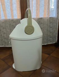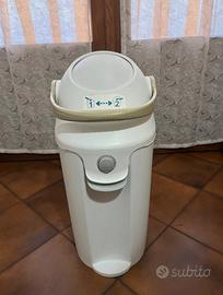 Mangia pannolini bianco e beige, marchio Pee&Poo. Utilizzabile con qualsiasi tipo di sacchetti dell’immondizia. Chiusura e apertura tramite bottone per cambio del sacchetto. Apertura e chiusura tramite leva per buttare il pannolino. Utilizzato poche volte, come nuovo.