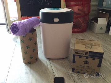 Aggiungo 3 ricariche oltre a quella già presente nel bidone e un rotolo di sacchetti per riempire le ricariche (il rotolo è circa a 3/4 … 150 metri circa). Tutto come nuovo.