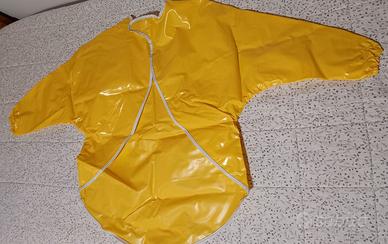 Mantellina protettiva per dipingere per bambini. Lunghezza cm.80 - larghezza da manica a manica cm.115 - larghezza cm. 50. Chiusura con velcro e asola per appenderla. Ritiro gratuito a Milano o Cornaredo.