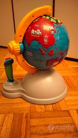 Mappamondo interattivo multicolore Apprendo. Gioco educativo. Muovendo il joystick ci si posiziona sui vari continenti alla scoperta degli animali e delle zone del mondo. Tre modalità di gioco: esplorazione (il gioco dà informazioni sugli animali o sulla zona su cui ci si posiziona), alla scoperta del mondo (il gioco chiede di trovare una zona della Terra), Safari (il gioco chiede di trovare un determinato animale). Adatto per bambini da 3-6 anni. Funziona con 4 pile stilo non incluse. Buone condizioni, soltanto una scritta risulta parzialmente cancellata (vedere ultima foto)