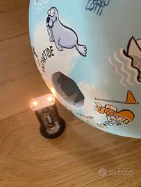 Per inserire le batterie è sufficiente sfilare l'asta blu in plastica nella parte sotto. Un piccolo interruttore sempre nella parte in basso, permette di accendere e spegnere il mappamondo.
