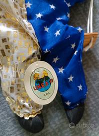 Marionetta clown pagliaccio vintage, solamente esposta, ancora con il suo cartellino attaccato. Testa in ceramica dipinta a mano, perfetto e bellissimo. Altezza compresi fili 46 cm circa. Da collezione!