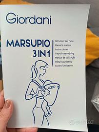 Marsupio Giordani 3 in uno, comprato prima della nascita di mio figlio ma mai usato per i miei problemi alla schiena. É totalmente nuovo, aperto solo per capire come si indossava. Utilizzabile dalla nascita ai 12 mesi grazie ai cuscini e ai supporti adeguati. Il prezzo è leggermente trattabile considerando che il prodotto è nuovo
