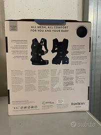 Marsupio Baby Carrier One Air Airy Mesh colore blu navy. Adatto da 3,5 a 15 kg. quattro posizioni: neonato, verso il genitore, rivolto all'esterno o sulla schiena. Usato 3 volte durante una vacanza