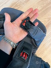 Chiusure di sicurezza con clip a scatto, molto comode anche per indossare il marsupio da soli tenendo il bimbo in braccio.
