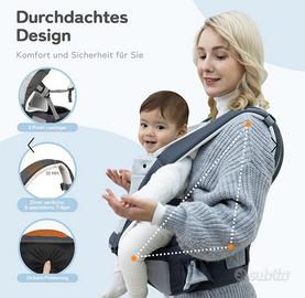 Ciao vendo questo marsupio ancora confezionato mai usato. Multiposizione - Marsupio trasformabile per tenere il tuo bambino in varie posizioni. Ad esempio, fronte genitori, fronte strada, sulla schiena e altre posizioni. Comfort ergonomico - l’ulteriore imbottitura in cotone nelle zone delle gambe del marsupio protegge il tuo bambino da un forte attrito durante gli spostamenti e la sua solida seduta imbottita assicura una corretta posizione ergonomica naturale a 'M' in tutte le posizioni di trasporto man mano che il bambino cresce e impedisce la formazione delle gambe a O. Cresce con il bambino - Morbido al tatto e traspirante, abbraccia dolcemente il tuo piccolo. Regolabile per adattarsi alla crescita del bambino e favorire un sano sviluppo di ossa e muscoli, per bambini da 4 mesi a 3 anni, fino a 15 kg.
