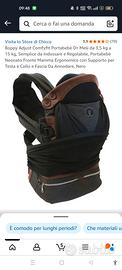 Boppy Adjust Comfyfit Portabebè 0+ Mesi da 3,5 kg a 15 kg, Semplice da Indossare e Regolabile, Portabebè Neonato Fronte Mamma e Fronte Mondo ,Ergonomico con Supporto per Testa e Collo e Fascia Da Annodare, colore Nero( con inserti pelle marrone)