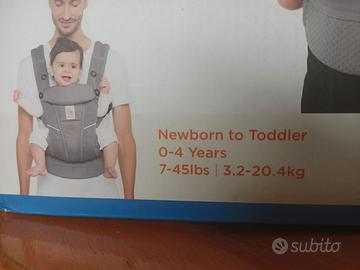 Ergobaby, marsupio ergonomico, UNICO con 4 posizioni di trasporto (anteriore, laterale, posteriore e anteriore fronte strada). Seduta regolabile dai neonati fino ai bambini più grandi (da 3,2 a 20,4 kg).