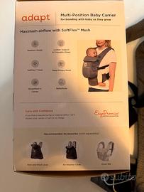 Marsupio ergonomico - Ergobaby Baby Carrier Adapt Soft Flex Mesh Graphite Grey * Prezzo originale €149,90 * Colore: Graphite Grey * Materiale: Tessuto a rete SoftFlex * Marchio: Ergobaby * Tipo di cinghia: Regolabile * Istruzioni per la cura del prodotto: Lavare in lavatrice * Peso minimo consigliato: 3,2 Chilogrammi * MARSUPIO ERGONOMICO – Indossabile in 3 posizioni (anteriore, laterale o posteriore). L’ampia seduta a regolazione continua sostiene la naturale posizione ergonomica a ranocchia (posizione a M) dai neonati fino ai bambini più grandi (da 3,2 a 20,4 kg) * TRASPIRANTE – L’innovativo tessuto mesh SoftFlex con la sua struttura reticolare a losanghe è presente sull’intero marsupio e assicura la massima circolazione d’aria in tutte le posizioni * MASSIMA COMODITÀ DI TRASPORTO – Supporto lombare e spallacci imbottiti per la massima comodità di trasporto: Distribuzione uniforme del peso su anche e spalle. Spallacci adattabili e incrociabili * PROTEZIONE PER TUTTO IL GIORNO – Con supporto imbottito ripiegabile per testa e nuca, cappuccio a scomparsa per la protezione solare e visiva (per l’allattamento) così come inserti riflettenti per una migliore visibilità * RICONOSCIUTO come “sano per le anche” dallo Hip Dysplasia Institute e dotato del sigillo di qualità della “Aktion gesunder Rücken e.V.”