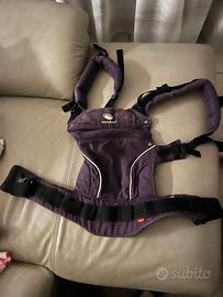 Possibilità di trasporto anteriore, laterale e posteriore. Con seduta integrata per neonati. Cappuccio estraibile. Colore viola