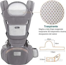 Vendo marsupio ergonomico per neonati e bambini da 0 a 36 mesi (fino a 25 kg di peso), mai usato, completo di confezione originale.