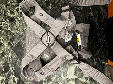 Marsupio mini per neonati 0-12 mesi colore grigio chiaro usato pochissime volte. Si regola per neonati da 3kg a 11 kg. Totalmente lavabile in lavatrice. Presente anche la scatola originale.
