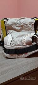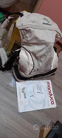 In cotone biologico certificato. 3 posizioni di trasporto versatili: fronte, fianco, schiena. Spalline imbottite e cintura ergonomica regolabili distribuiscono il peso in modo uniforme prevenendo fastidi a schiena e spalle garantendo comfort e supporto ottimali sia per il genitore sia per il bambino/a.