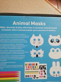 6 maschere di animali da colorare e costruire MAI usate. La confezione contiene anche i cordini per le maschere, gli adesivi e un set di colori. Posso consegnare a Treviso o Montebelluna