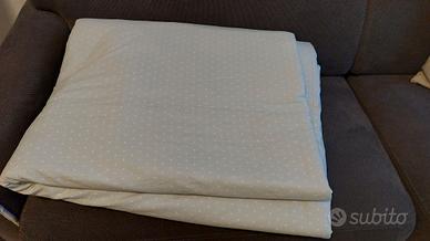 Vendo materassino usato come base per giochi e attività con il mio bimbo. le dimensioni sono circa 170x120 cm, è spesso circa 1cm, non è un materassino che offre protezione da cadute/urti ma crea un isolamento con il pavimento ed è cmq morbido al tatto e gradevole per starci stesi/seduti. ha il vantaggio di poter essere piegato e risposto in un cassetto/armadio. È sfoderabile e si può lavare in lavatrice a 30 grado sia la fodera che il tessuto interno. sulla fodera presenta una macchia che non è mai andata via nonostante i lavaggi.