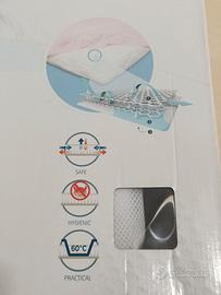Ciao a tutti! Vendo materassino Aerosleep protector neonato per lettino. Questo materassino evita che il bambino, nel caso dovesse girarsi a faccia, in giù possa respirare dato la sua struttura che solleva il corpo e permette la respirazione ( Inoltre è a tutto beneficio del corpo del bambino perché crea una zona perfettamente traspirante su tutto il corpo). Il materassino è in perfette condizioni e fornito con coprimaterasso traspirante della stessa linea. Lavato e sanificato da lavanderia specializzata, viane consegnato in perfetto ordine e con il suo box originale.