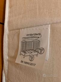 Materasso AirCuddle per lettino bimbi nuovo, mai usato. Il materasso ortopedico di AirCuddle è compreso di: materasso ortopedico in espanso a rigidita progressiva e coprimaterasso traspirante totalmente permeabile all'aria grazie alla tecnologia 3D. Dimensioni: 62 x 125 x 12 cm. Adatto per lettini/culle che prevedono materasso di queste dimensioni o in accoppiata con lettino Foppapedretti, disponibile in annuncio separato.