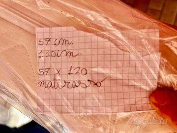 Venfo materasso per lettino/culla del marchio Baby Sanity. Ottimo per lettino o lettino da campeggio. • Materiali: Anima e rivestimento in 100% cotone, naturale e traspirante, ideale per prevenire eccessiva sudorazione e allergie. • Dimensioni: 57 x 120 cm (misura standard per molti lettini). • Accessori: Inclusa fodera su misura protettiva e lavabile. • Condizioni: Come nuovo, privo di macchie o cedimenti, usato pochissimo. Si vende sanificato e chiuso nel cellophane.
