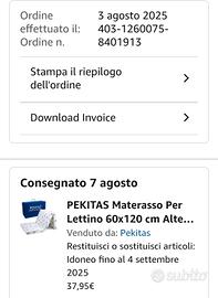 Vendo Materasso culla pieghevole, come nuovo acquistato questo agosto e usato solo per una settimana di vacanza. Prezzo 25€