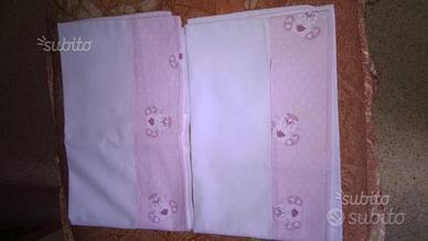 Vendo materasso in lattice per culla (lettino), comprimaterasso, piumino hello kitty, 2 set completi di lenzuola comprensivi di lenzuolo inferiore con angoli, lenzuolo superiore e federa. Il tutto vendibile anche singolarmente e tutto assolutamente pari al nuovo. Vendo per inutilizzo e mancanza di spazio, possibile visionare il tutto per verificarne lo stato e la qualità