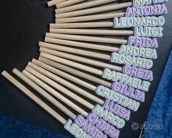 Matite con nome , personalolizzabili , con i vari colori , e vari nomi comprese di matita Regali per feste Il prezzo è inteso a singola matita ma in base alle quantità varia ,