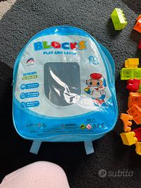 Zaino contenente mattoncini colorati per giocare e imparare,promuove la creatività,purtroppo ho perso il foglio delle istruzioni dove cerano le figure da fare,ma si puo scaricare da internet