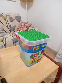 100 mattoncini compatibili Lego per le prime costruzioni dei bambini. In ottimo stato. Da 1 anno e mezzo.