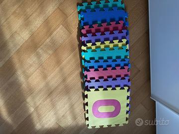10 mattonelle colorate 32x32, con numeri. Con sacchetta contenitore.
