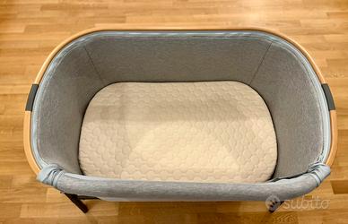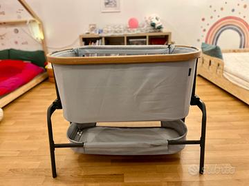 Culla neonato 0-6 mesi, max 9 kg, fianco letto reclinabile in posizione anti rigurgito, altezza regolabile, in dotazione anche il materassino culla, un ampio cestello, il set di cinghie per culla e la propria borsa da viaggio. Usato poco e in ottime condizioni