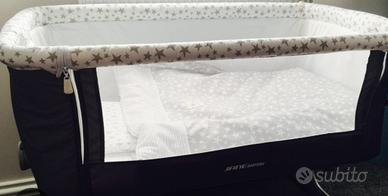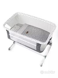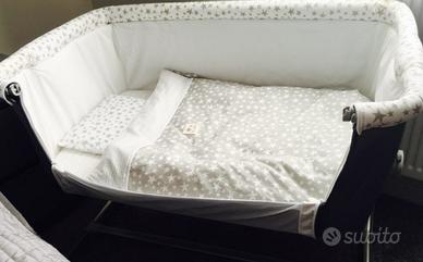 La culla Babyside di Jané é comoda e semplice per fare co-sleeping in sicurezza piedini telescopici e 6 posizioni di altezza per adattarsi a qualunque letto. Babyside si puó utilizzare anche come culla indipendente alzando uno dei suoi laterali. 4 ruote indipendenti con freno, risulta facile muoverla e si puó piegare. Nel prezzo è compreso il set materasso e lenzuola con piumone. (vedi foto) Piumone con imbottitura sfilabile. Regalo anche un cambio coprimaterasso salvapipi' ancora confezionato Gambe telescopiche. Richiudibile. Utilizzabile da 0 mesi fino a 9 kg. Peso culla: 10 kg. Dimensioni: Culla: 92 x 67 x H. 68/79 cm. Materasso: 49,5 x 82,5 cm.