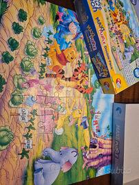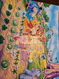 Puzzle Lisciani Winnie the Pooh completo dei 60 pezzi. Il coperchio della scatola è scotchato su un lato.