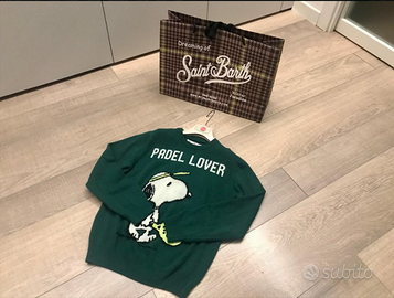 RAFFINATO, SUPERFASHION e CALDO maglioncino girocollo realizzato in misto lana/cashmere, colore verde scuro, Limited Edition PEANUTS PADEL LOVER. Articolo originale attuale collezione MC2 SAINT BARTH APRES SKY JUNIOR. Veste taglia 12 anni. CONDIZIONI: praticamente nuovo adoperato per poche ore, da vagliare quale IDEAREGALO, prezzo RETAIL 159euro!