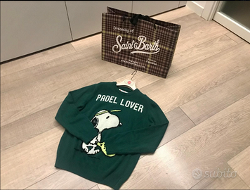 RAFFINATO, SUPERFASHION e CALDO maglioncino girocollo realizzato in misto lana/cashmere, colore verde scuro, Limited Edition PEANUTS PADEL LOVER. Articolo originale attuale collezione MC2 SAINT BARTH APRES SKY JUNIOR. Veste taglia 12 anni. CONDIZIONI: praticamente nuovo adoperato per poche ore, da vagliare quale IDEAREGALO, prezzo RETAIL 159euro!